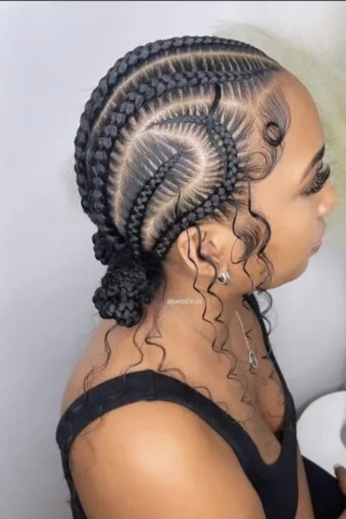 If you want a sleek, professional hairstyle, cornrows that end in a low bun are perfect. It’s protective, elegant, and lasts for weeks.