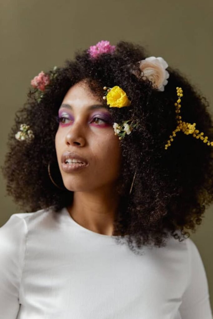 There’s nothing more romantic than a voluminous, soft afro adorned with a floral crown or hair jewels. It’s playful, whimsical, and makes a statement of self-love.
