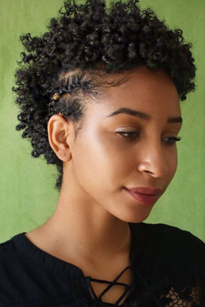 Looking for something edgy yet flirty? Try a side-swept frohawk. Secure one side with bobby pins or braids and let the rest of your curls shine.