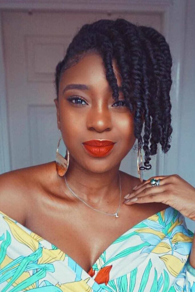 Combine the structure of a braided crown with the freedom of a twist-out at the back. This hairstyle is perfect for dancing the night away or a rooftop dinner.