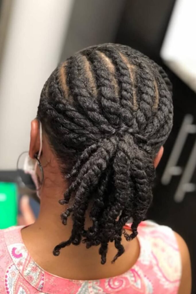 Flat twists give your style a romantic and feminine touch. Twist the front and crown into a low ponytail or bun for a sleek, protective, and stunning look.