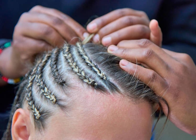 - Begin a basic cornrow braid with your natural hair