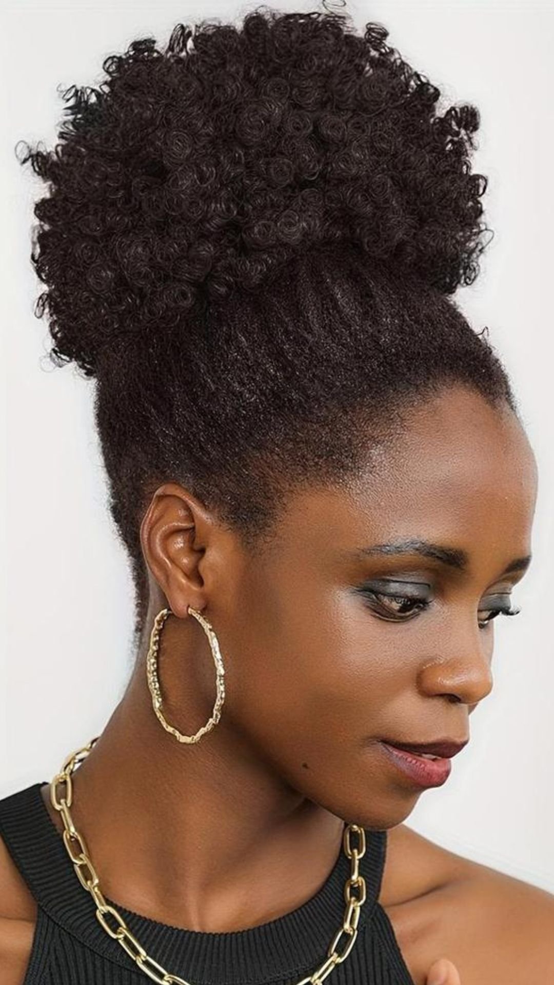 For a mix of elegance and freedom, go for a half-up, half-down natural hairstyle decorated with pins or barrettes. Use statement pieces like pearl clips, gold pins, or rhinestone accents to elevate your curls or twists.