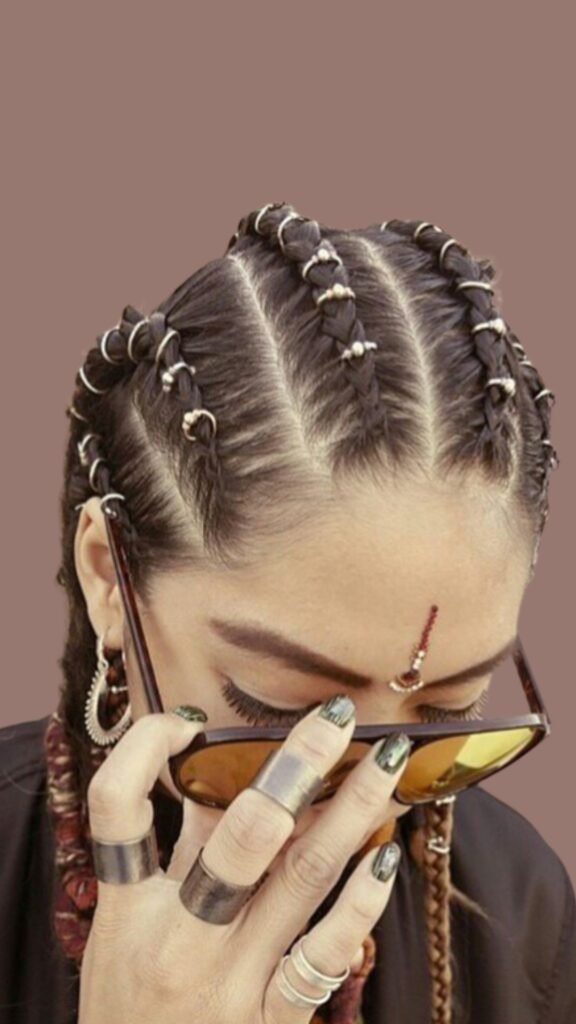 Cornrows are timeless, protective, and incredibly versatile. Add metallic hair rings or cuffs along the braid lines for that extra flair. This look is especially great for dancing and long festival days because it stays neat and comfortable.