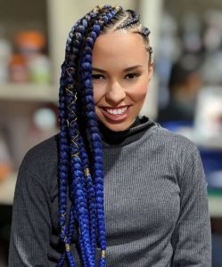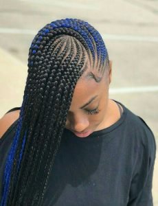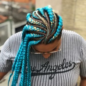 This lemonade style helps us to remember blurring dusk with shades of cobalt blue set facing your dark braids. The cobalt braids start as small on your scalp and straightforwardness out into thickness as they broaden outwards. This look is clearly a shocker with the scramble of splendid blue extensions. The dark black strands balance perfectly with the level yet somewhat curled laid edges.