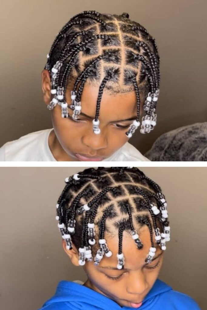 Add a touch of color and personality by finishing the braids with beads. This is a fun option for little boys, and you can customize the bead colors to match their favorite sports teams, superheroes, or even school colors.