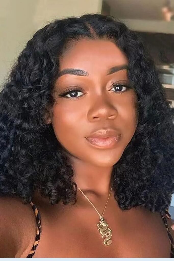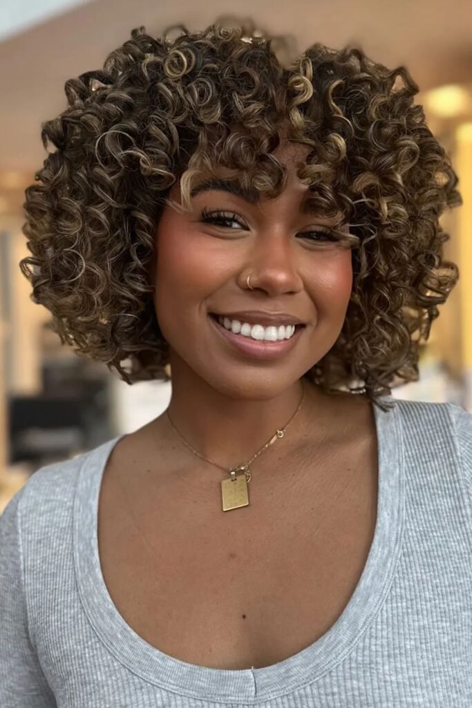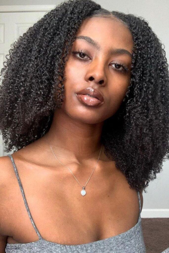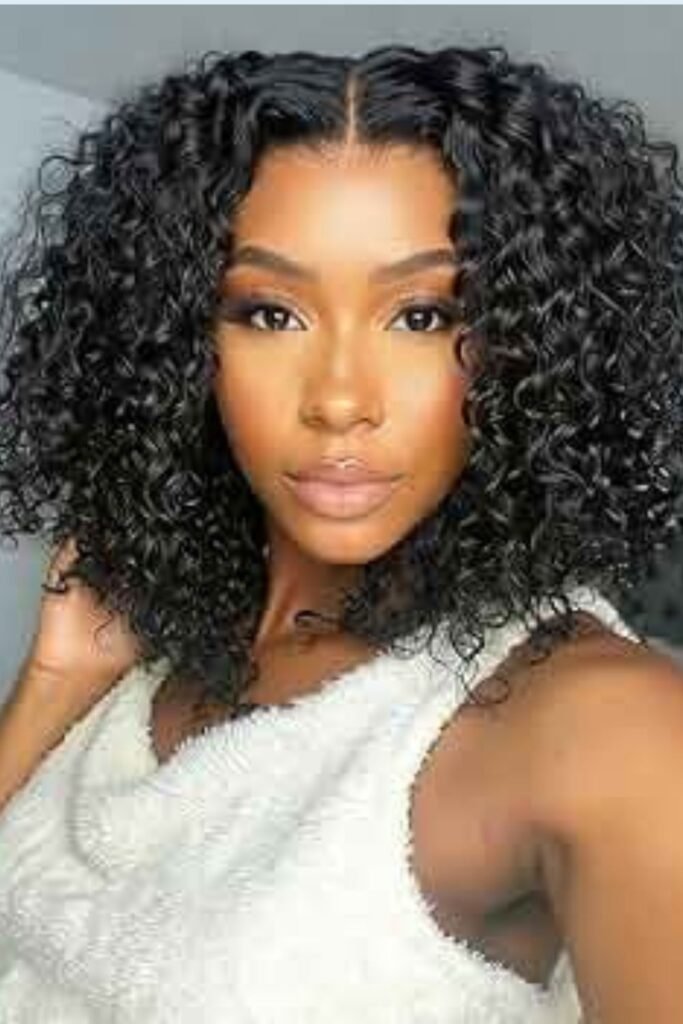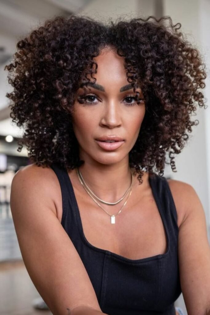 If you have shorter natural hair, a curly bob with a middle part is a beautiful option. The center part gives the haircut symmetry while allowing the curls to frame the face naturally.