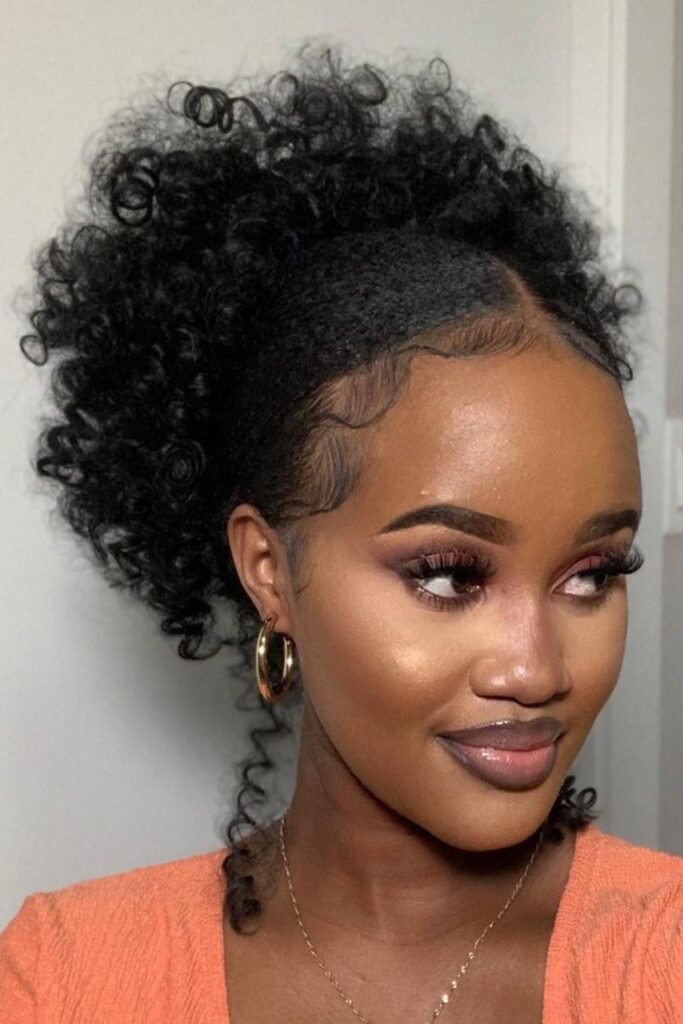 This style works beautifully for medium to long natural hair and requires minimal styling. Simply fluff your curls with a pick and define them with a moisturizing curl cream.