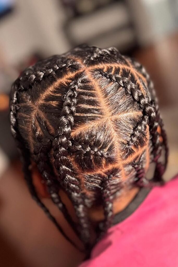 Middle part cornrows are sleek, protective, and very trendy. The middle part divides the braids into two symmetrical sections, giving the hairstyle a neat and stylish finish.