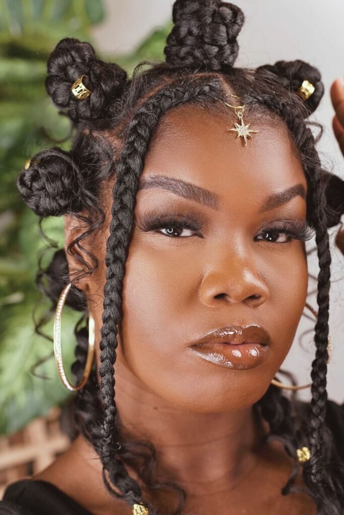 Playful and trendy, space buns are fun for younger women or creative looks.