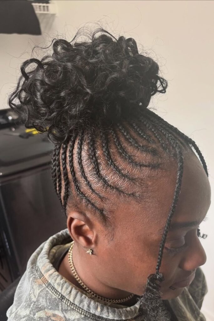 Cornrows styled into a bun or ponytail are long-lasting and protective.