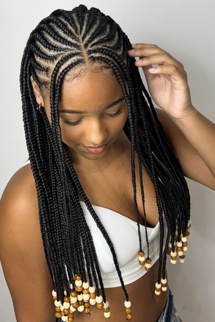 Long box braids with beads are bold, stylish, and always trending. This look combines the protective benefits of box braids with beautiful bead details that add personality and culture to your style.