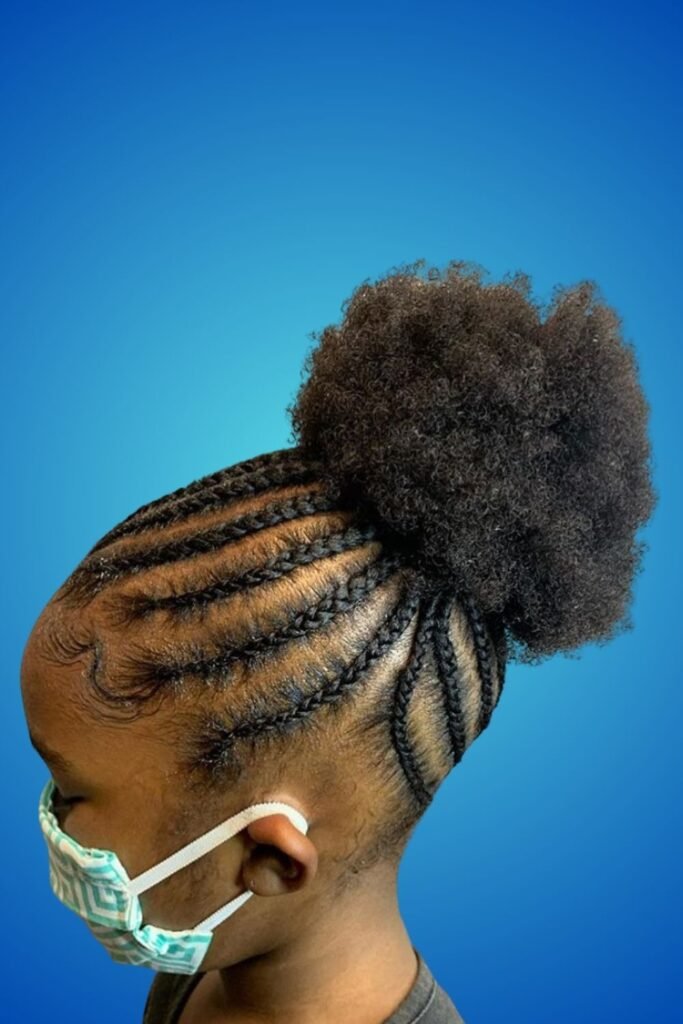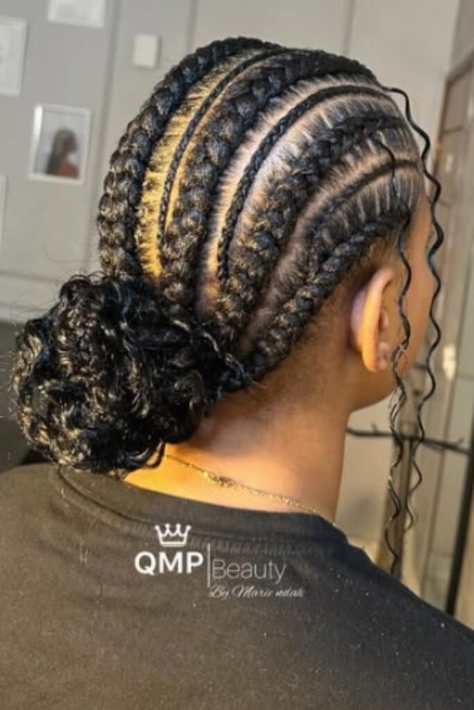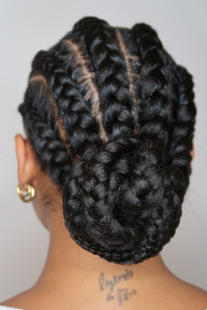 Feed-in braids at the front add definition, while a puff in the back keeps things soft and natural.