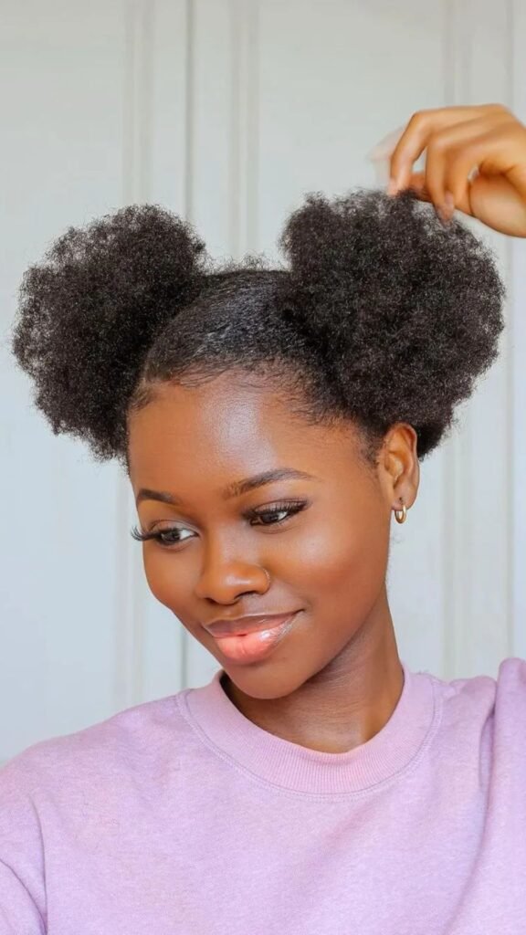 A high puff is one of the easiest and most flattering no-heat hairstyles for natural hair. It gathers your curls at the crown, creating a bold and beautiful look.
