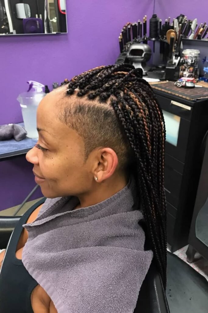 If you love braids, consider combining them with a shaved side for an edgy, trendy look. The shaved side provides a clean base for your braids, allowing them to stand out more. You can opt for simple cornrows, intricate box braids, or even a combination of different braided styles. This unique fusion of braids and a shaved side is perfect for those who want to blend texture, style, and edge.