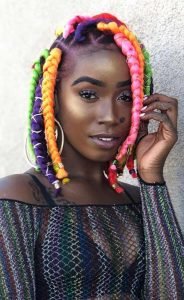 make your short braids extraordinary to the next level. Check out these ultimate colorful jumbo braids. It is not an everyday look but you can wear it once in a while. Don’t forget to use accessories like strings and beads.