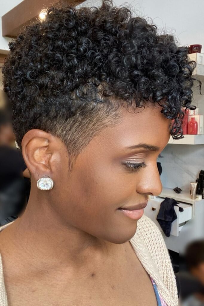A curly afro crop celebrates natural texture while keeping the hair short and manageable. Instead of a large afro, this haircut keeps curls compact and neatly shaped.