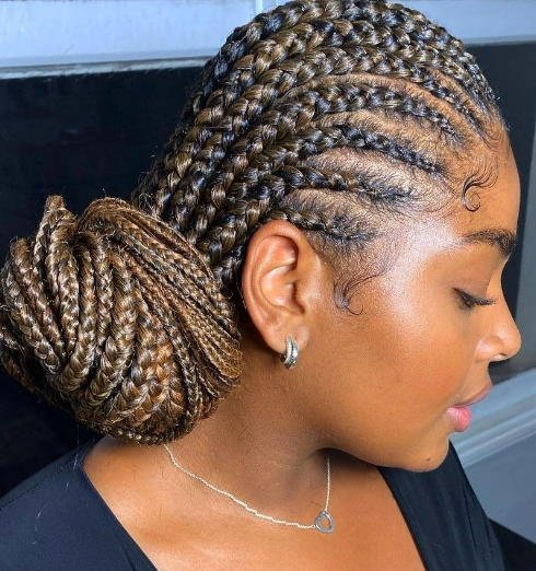These braids can be styled in various patterns, including straight-back, zigzag, or curved designs. Ghana braids are a protective style that offers a striking and elegant appearance.