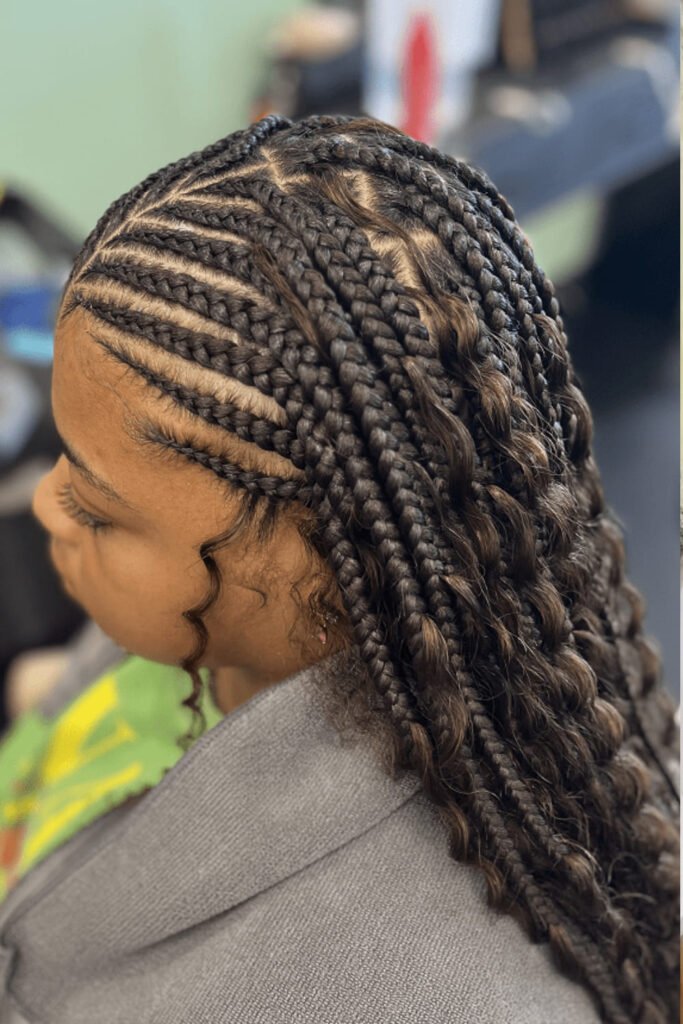 Start with thick Ghana-style cornrows and let them flow into knotless braids. A beautiful fusion of structure and movement.
